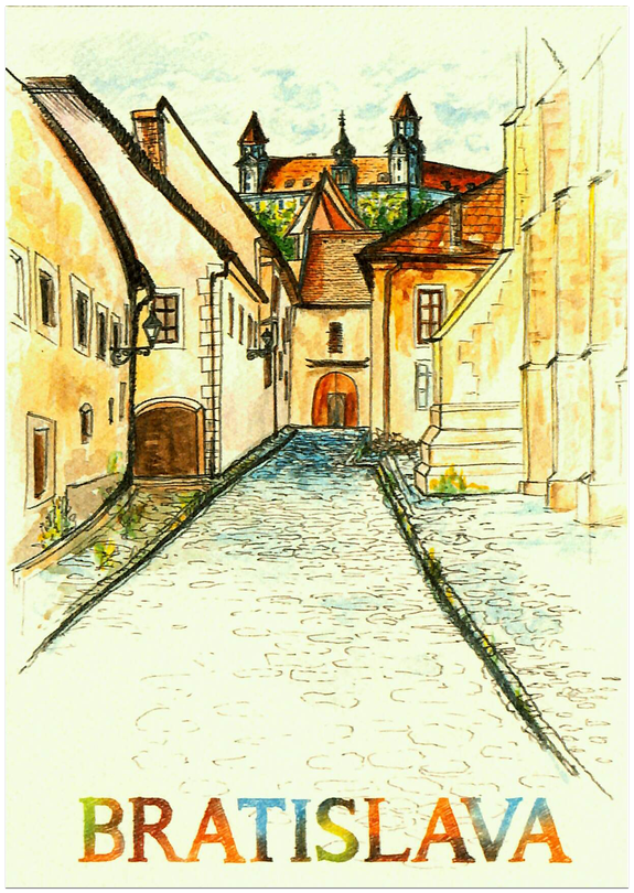 Pohľadnica - Bratislava kreslená / Farská ulica