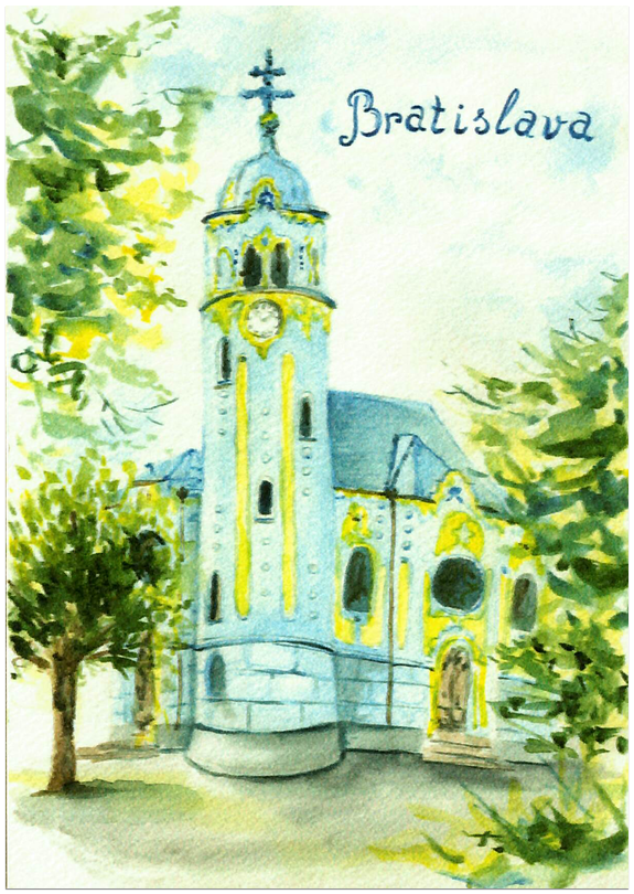 Pohľadnica - Bratislava kreslená / Modrý kostolík