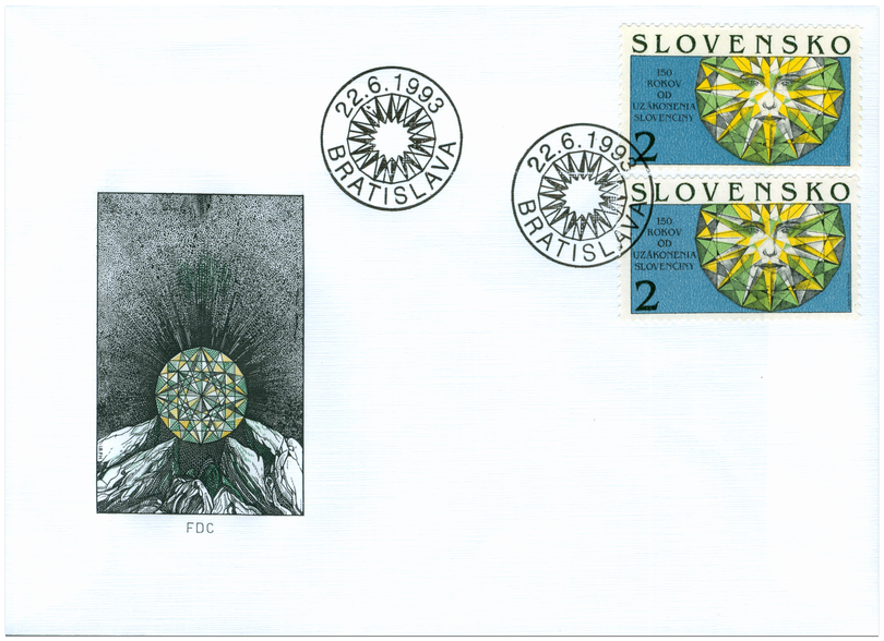 Ministerstvo dopravy, spojov a verejných prác SR vydalo dňa 22.6.1993 príležitostnú poštovú známku "150 rokov od uzákonenia slovenčiny" s nominálnou hodnotou 2 Sk. Autorom výtvarného návrhu známky je akad. maliar Igor Benca, rytinu spracoval akad. maliar Martin Činovský. Obrazovú časť známky tvorí symbolická kresba doplnená textom "150 rokov od uzákonenia slovenčiny". Známku o rozmeroch 40x23 mm vytlačila Poštová tlačiareň cenín Praha a.s. rotačnou oceľotlačou kombinovanou s hĺbkotlačou v tlačových listoch po 50 kusoch. Známka platí od 22. júna 1993 v tuzemskom a medzinárodnom styku až do odvolania. Túžba Slovákov po spisovnom jazyku siaha až do cyrilo-metodského obdobia, keď sa začala používa...