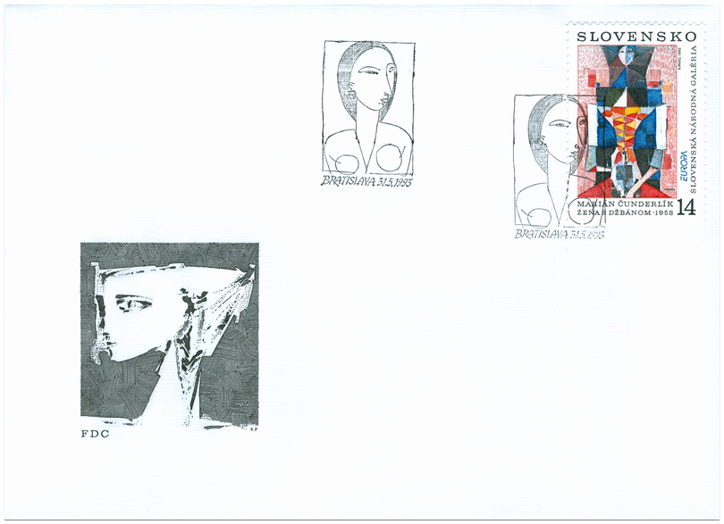 Ministerstvo dopravy, spojov a verejných prác SR vydalo dňa 31.5.1993 príležitostnú poštovú známku v sérii "Europa" Marián Čunderlík - Žena s džbánom. Autorom výtvarného návrhu známky je akademický maliar Marián Čunderlík, autorom rytiny Pavel Kovařík.. Známku rozmerov 26x40 mm vytlačila Poštová tlačiareň cenín Praha a.s. oceľotlačou z plochých platní. Známka platí od 31.5.1993 v tuzemskom a medzinárodnom styku až do odvolania. Marián Čunderlík (31.1.1926 Motyčky pri Banskej Bystrici - 1.10.1983) maliar, ilustrátor, grafik. V rokoch 1946-1949 pôsobil na oddelení kreslenia a maľovania Slovenskej vysokej školy technickej v Bratislave u profesora J.Mudrocha. V rokoch 1949-1953 bol na oddelení monumentálnej maľby Vysokej školy...
