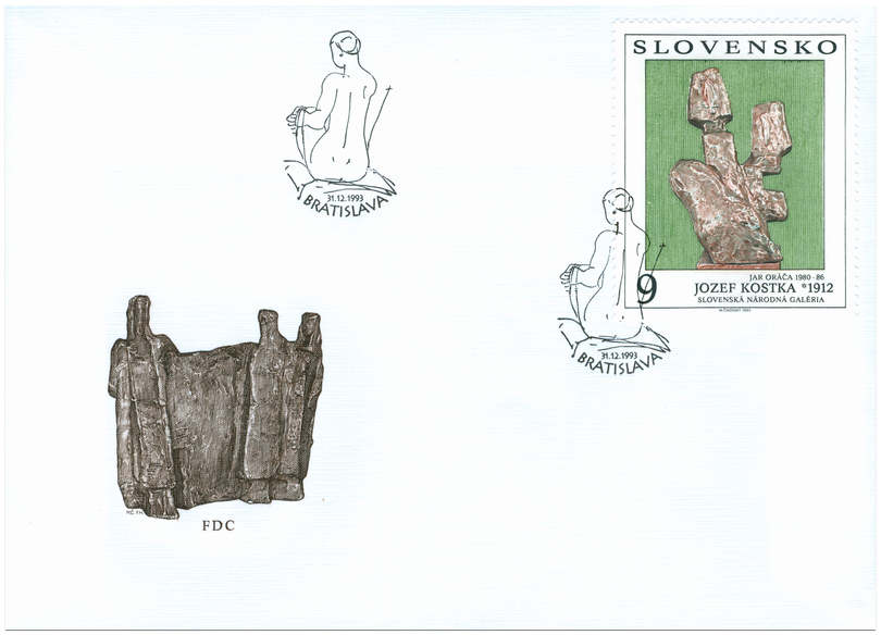 Ministerstvo dopravy, spojov a verejných prác vydalo dňa 31. 12. 1993 príležitostnú známku "Jozef Kostka: Jar oráča" , zo série Umenie na poštových známkach, v nominálnej hodnote 9 Sk. Plastika z majetku Slovenskej národnej galérie je vyobrazená na zelenom pozadí, popis diela je v spodnej časti známky. Autorom grafickej úpravy známky a rytiny je akad. maliar Martin Činovský. Známku rozmerov obrazovej časti 40 x 50 mm vytlačila 4-farebnou oceľotlačou z plochých platní PTC, a.s. Praha. Známka platí v tuzemskom a zahraničnom poštovom styku od 31. 12. 1993 až do odvolania. Jozef Kostka (29.1.1912 Stupava - 30.9.1996 Bratislava) ako sochár bol významným...