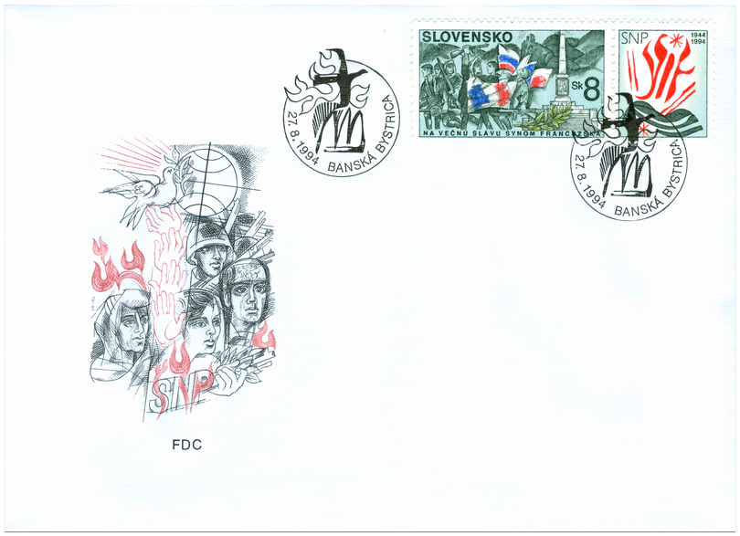Ministerstvo dopravy, spojov a verejných prác vydalo dňa 27. 8. 1994 príležitostnú poštovú známku "50. výročie Slovenského národného povstania - francúzski partizáni" v nominálnej hodnote 8 Sk. Na viacfarebnej známke rozmerov 40 x 23 mm je znázornené umelecké stvárnenie myšlienky medzinárodného boja proti fašizmu s použitím motívu Strečna a pamätníka francúzskych partizánov. Na známke je text SLOVENSKO, NA VEČNÚ SLÁVU SYNOM FRANCÚZSKA a nominálna hodnota 8 Sk. Známka je doplnená kupónom na ktorom je stvárnený grafický motív s nápison SNP 1944-1994. Výtvarníkom emisie je akademický maliar Jozef Baláž. Rytcom emisie je akad. maliar Martin Činovský. Známku s kupónom vytlačila Poštovní tiskárna...