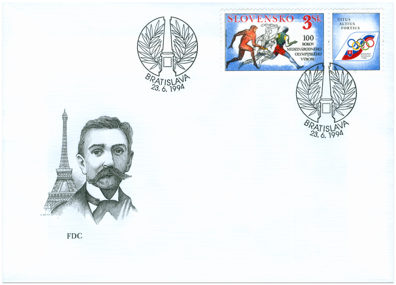 Ministerstvo dopravy, spojov a verejných prác vydalo dňa 23. 6. 1994 príležitostnú poštovú známku "Olympijské hnutie" v nominálnej hodnote 3 Sk. Viacfarebná známka rozmerov 23 x 40 mm, na ktorej je symbolicky vyjadrené odovzdávanie štafety olympijských ideálov od antiky až po modernú dobu, s nápisom 100 rokov Medzinárodného olympijského výboru, je doplnená kupónom rozmerov 23 x 19 mm. Na kupóne je znak Slovenského olympijského výboru a olympijské heslo. Autorom výtvarného návrhu známky a kupónu je akad.maliar Ivan Schurmann. Autorom rytiny známky je akademický maliar Martin Činovský. Rytinu kupónu vytvoril František Horniak. Známku a kupón vytlačila Poštovní tiskárna cenin, a.s., Praha rotačnou...