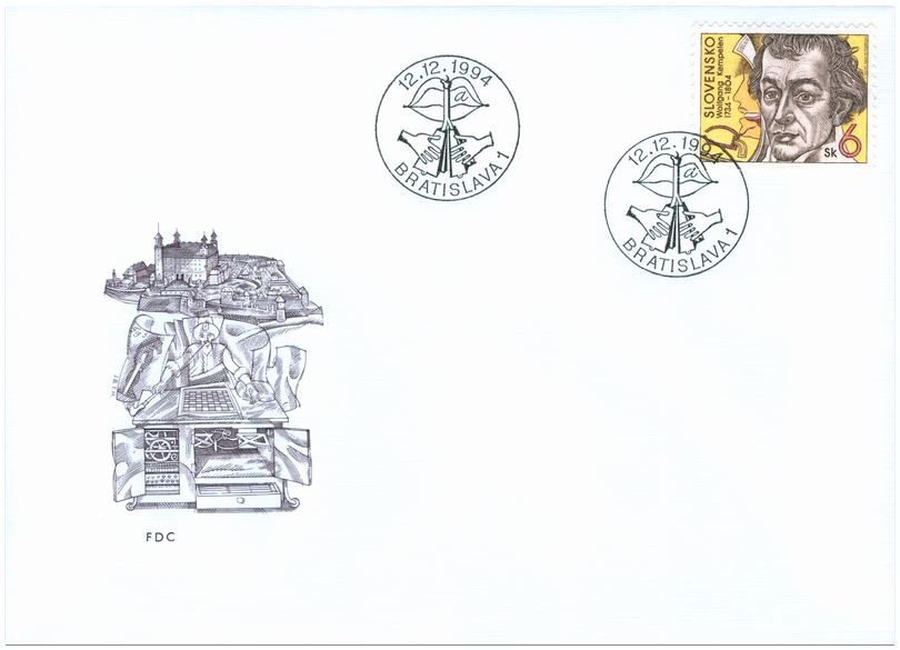Ministerstvo dopravy, spojov a verejných prác vydalo dňa 12. 12. 1994 príležitostnú poštovú známku "Wolfgang Kempelen" (1734-1804) zo série Osobnosti v nominálnej hodnote 6 Sk. Známka s portrétom tohto významného vynálezcu a mechanika je doplnená časťou ilustrácie z Kempelenovej štúdie ľudskej reči. Autorom známky je akad. maliar Jozef Baláž. Rytinu vytvoril akad. maliar Martin Činovský. Známku vytlačila Poštovní tiskárna cenin, a.s., Praha rotačnou oceľotlačou v kombinácii s hĺbkotlačou v náklade 3 000 000 ks. Wolfgang Kempelen (23.1.1734 Bratislava - 26.3.1804 Viedeň) - polytechnik, mechanik, vynálezca, direktor soľných baní v Sedmohradsku, radca Uhorskej sedmohradskej kancelárie vo Viedni. V roku 1778 zostrojil hovoriaci...