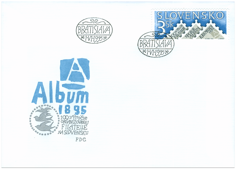 Ministerstvo dopravy, pôšt a telekomunikácií vydalo dňa 1. 6. 1995 príležitostnú poštovú známku "100. výročie organizovanej filatelie na Slovensku" v nominálnej hodnote 3 Sk. V Kremnici v rodinnom dome slovenského národovca, historika a mestského archivára Pavla Križku dňa 30. marca 1895 založili jeho vnuci Aurel a Klement Lehotzkovci "známkový spolok", neskoršie pomenovaný Album, ktorého poslaním bolo "zbierať listové známky, čiže marky a ochraňovať ich pred záhubou". Spolok Album, prvá slovenská filatelistická organizácia na prelome 19. a 20. storočia položila základy organizovanej filatelie na Slovensku. Filatelistický odkaz spolku Album dnešných zberateľov poštových známok zaväzuje. Medzinárodná filatelistická výstava Dunajfila '95 nech je dokladom...