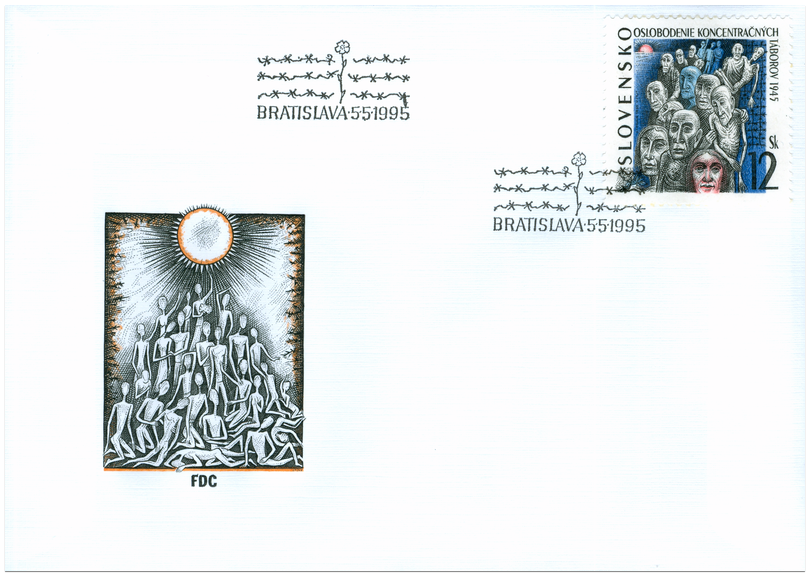 Ministerstvo dopravy, pôšt a telekomunikácií vydalo dňa 5. 5. 1995 príležitostnú poštovú známku "Výročie oslobodenia koncentračných táborov" v nominálnej hodnote 12 Sk. Spolu s 50. výročím skončenia 2. svetovej vojny a víťazstva nad fašizmom si celý svet pripomína aj 50. výročie oslobodenia nacistických koncentračných táborov. Kataklyzma vojny a kataklyzma holokaustu majú spoločné korene. Vytvorenie prvých nacistických koncentračných táborov ihneď po Hitlerovom nástupe k moci dávalo tušiť, že sú neklamnou predzvesťou azda najtragickejšej vojny v dejinách ľudstva. Spomienka na obete vykynožovacích koncentračných táborov nás zaväzuje a vydanie takejto príležitostnej známky je prejavom toho, že naša mladá Slovenská republika si túto záväznosť uvedomuje...