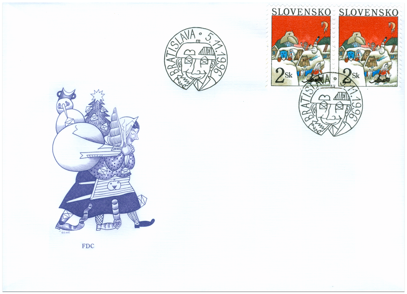 Ministerstvo dopravy, pôšt a telekomunikácií vydalo dňa 5.11.1996 príležitostnú poštovú známku s vianočnou tématikou (s vyobrazením idylickej vianočnej atmosféry na kysuckej dedine) o nominálnej hodnote 2 Sk. Autorom výtvarných návrhov emisie je akad. maliar Ondrej Zimka. Rytiny emisie vytvoril akad. maliar Martin Činovský. Viacfarebnú známku o rozmeroch obrazovej časti 23 x 30 mm (na výšku) vytlačila Poštovní tiskárna cenin, a.s., Praha technikou rotačnej oceľotlače v kombinácii s hĺbkotlačou na tlačových listoch po 50 ks. Vyznanie autora známky "Maliari majú okrem palety a štetcov aj nos a preto im farby voňajú. Dúhy, keď nerobia oblúk nad krajinou, spia v bodkovaných kobercoch lúk...