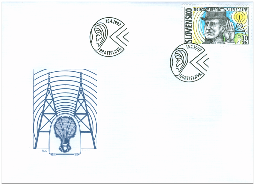 Ministerstvo dopravy, pôšt a telekomunikácií vydalo dňa 15. 4. 1997 príležitostnú poštovú známku " 100 rokov bezdrôtovej telegrafie " s nominálnou hodnotou 10 Sk. Na známke je symbolická kresba s portrétom načúvajúceho G. Marconiho. Autorom výtvarných návrhov emisie je Oliver Solga, rytcom je Martin Srb. Viacfarebnú známku s portrétom načúvajúceho G. Marconiho o rozmeroch obrazovej časti 23 x 40 mm (na šírku) vytlačila Poštovní tiskárna cenin, a.s., Praha technikou rotačnej oceľotlače v kombinácii s hĺbkotlačou na tlačových listoch po 50 známkach. V posledných rokoch devätnásteho storočia sa zaznamenalo niekoľko významných objavov a vynálezov, ktoré podmienili rozvoj bezdrôtovej telegrafie a nadväzne rozvoj...