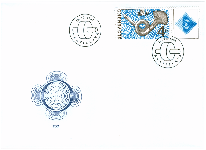 Ministerstvo dopravy, pôšt a telekomunikácií SR vydalo dňa 18. 12. 1997 príležitostnú poštovú známku " Deň poštovej známky " s nominálnou hodnotou 4.Sk. Na známka je parafráza loga Slovenskej pošty, š.p. v podobe rydla skrúteného do tvaru poštovej trúbky zobrazeného na podklade siete rytých línií. Na kupóne je zobrazené oko - motív rozložený autotypickým rastrom . Autorom výtvarných návrhov emisie je Robert Brun. Rytcom je František Horniak . Známku hnedo-modrej farebnosti rozmerov obrazovej časti 40 x.23 mm (na šírku) a kupón rozmerov 19 x 23 mm (na výšku) vytlačila Poštovní tiskárna cenin, a.s., Praha technikou rotačnej oceľotlače v kombinácii s hĺbkotlačou...