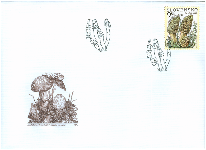 Ministerstvo dopravy, pôšt a telekomunikácií SR vydalo dňa 17. 9. 1997 tri príležitostné poštové známky v nominálnej hodnote po 9 Sk vytlačené na spoločnom hárčeku s námetom huby v sérii Ochrana prírody. Na známkach sú vyobrazené: hríb bronzový, smrčok jedlý a náramkovka cisárska, na medzipolí a okrajoch tlačového listu: mnohokrčka dierkovaná, kyjak useknutý, rôsolovec červený, kozák osikový a kučierka veľká. Autorom výtvarných návrhov emisie je Dušan Kállay, rytcom je Václav Fajt. Viacfarebné známky o rozmeroch obrazovej časti 23 x.30 mm (na výšku) na hárčeku rozmerov 155 x 103 mm vytlačila Poštovní tiskárna cenin, a.s., Praha technikou oceľotlače z plochých platní v...