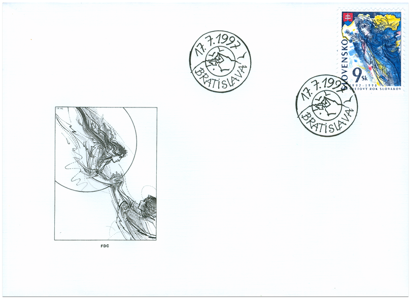 Ministerstvo dopravy, pôšt a telekomunikácií SR vydalo dňa 17. 7. 1997 príležitostnú poštovú známku " Svetový rok Slovákov " v nominálnej hodnote 9 Sk. Na známke je vyobrazená alegorická postava na pozadí obrysov Slovenskej republiky a so zakomponovaním štátneho znaku SR. Autorom výtvarných návrhov emisie je akad. maliar Igor Rumanský, rytcom je akad. maliar Rudolf Cigánik. Viacfarebnú známku o rozmeroch obrazovej časti 23 x 30 mm (na výšku) vytlačila Poštovní tiskárna cenin, a.s., Praha technikou rotačnej oceľotlače v kombinácii s hĺbkotlačou na tlačových listoch o 50 známkach . Slovenský národ sa 1. januára 1993 vyhlásením samostatnej Slovenskej republiky zaradil medzi štátne...