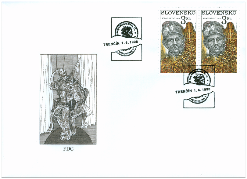 Ministerstvo dopravy, pôšt a telekomunikácií SR vydalo dňa 1. 6. 1998 príležitostnú poštovú známku "Kragujevac 1918" s nominálnou hodnotou 3 Sk. Známka s portrétom vodcu vzbury Viktora Kolibíka z trenčianskeho 71. pluku rakúsko-uhorskej armády Autorom výtvarných návrhov emisie a súčasne aj rytcom je Rudolf Cigánik . Viacfarebnú známku o rozmeroch obrazovej časti 23 x 40 mm (na výšku, šírku) vytlačila Poštovní tiskárna cenin Praha, a.s., technikou rotačnej oceľotlače v kombinácii s hĺbkotlačou na tlačových listoch po 50 známkach . Súčasne bola vydaná obálka prvého dňa vydania vrátane príležitostnej pečiatky s domicilom Trenčín. FDC vytlačila uvedená tlačiareň oceľotlačou z plochých platní v...