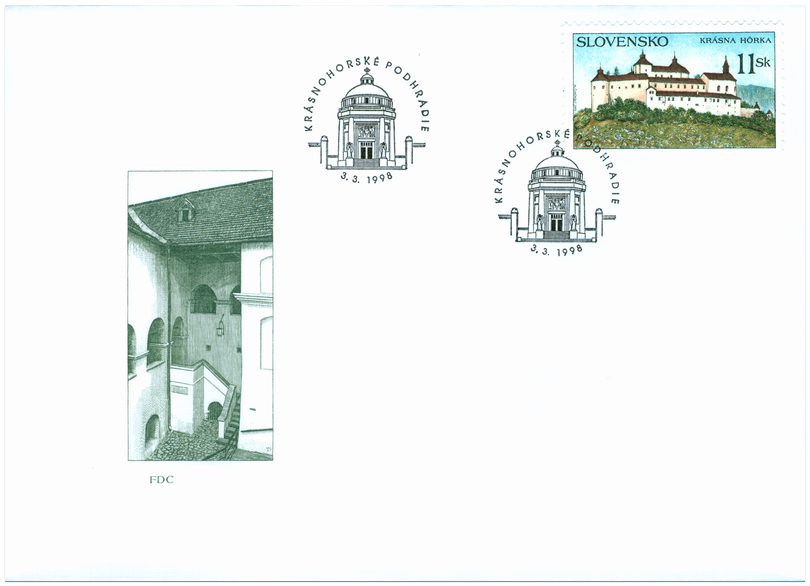 Ministerstvo dopravy, pôšt a telekomunikácií SR vydalo dňa 3.3.1998 tri príležitostné poštové známky série "Krásy našej vlasti" s námetom hradov: Budatín - 6 Sk Krásna Hôrka - 11 Sk Nitra - 18 Sk Viacfarebnú známku s vyobrazením hradu Krásna Hôrka s rozmermi obrazovej časti 40 x 23 mm (na šírku) vytlačila Poštovní tiskárna cenin Praha, a.s., technikou rotačnej oceľotlače v kombinácii s hĺbkotlačou. Známka Krásna Hôrka je vytlačené na tlačových listoch po 50 známkach. Autorom známky a súčasne aj rytcom je Martin Činovský. Súčasne bola vydaná obálka prvého dňa vydania s motívom nádvoria hradu, tlač v tmavozelenej farbe, autor Martin Činovský...