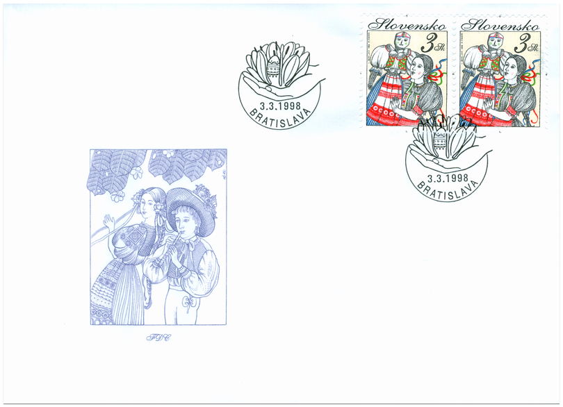 Ministerstvo dopravy, pôšt a telekomunikácií SR vydalo dňa 3. 3. 1998 príležitostnú poštovú známku z emisného radu "Ľudové zvyky " zobrazujúcu zvyk vynášania moreny s nominálnou hodnotou 3 Sk. Autorkou výtvarných návrhov emisie je Katarína Ševellová, rytcom je Rudolf Cigánik. Viacfarebnú známku o rozmeroch obrazovej časti 23 x 30 mm (na výšku) vytlačila Poštovní tiskárna cenin Praha, a.s., technikou rotačnej oceľotlače v kombinácii s hĺbkotlačou na tlačových listoch po 50 známkach . Súčasne bola vydaná obálka prvého dňa vydania vrátane príležitostnej pečiatky s domicilom Bratislava. Na FDC je zobrazená dvojica mladých v kroji. FDC vytlačila uvedená tlačiareň oceľotlačou z plochých platní...