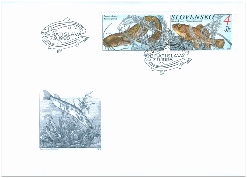 Ministerstvo dopravy, pôšt a telekomunikácií SR vydalo dňa 7. 9. 1998 tri príležitostné poštové známky série Ryby z emisného radu Ochrana prírody: Kolok veľký - 11 Sk Blatniak tmavý - 4 Sk Kapor obyčajný - 16 Sk Známky s vyobrazením uvedených rýb sú vytlačené na spoločnom tlačovom liste, na medzipoliach hárčeka sú zobrazené ďalšie chránené druhy rýb. Autorom výtvarných návrhov emisie je Dušan Kállay, rytiny vytvoril Josef Herčík. Viacfarebné známky o rozmeroch obrazovej časti 23 x 40 mm (na šírku) šachovnicovo rozmiestnené na hárčeku rozmerov 10,8 x 16,5 cm ( na výšku) vytlačila Poštovní tiskárna cenin Praha, a.s., technikou oceľotlače z...