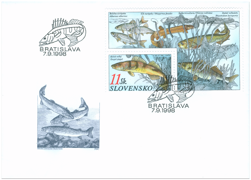Ministerstvo dopravy, pôšt a telekomunikácií SR vydalo dňa 7. 9. 1998 tri príležitostné poštové známky série Ryby z emisného radu Ochrana prírody: Kolok veľký - 11 Sk Blatniak tmavý - 4 Sk Kapor obyčajný - 16 Sk Známky s vyobrazením uvedených rýb sú vytlačené na spoločnom tlačovom liste, na medzipoliach hárčeka sú zobrazené ďalšie chránené druhy rýb. Autorom výtvarných návrhov emisie je Dušan Kállay, rytiny vytvoril Josef Herčík. Viacfarebné známky o rozmeroch obrazovej časti 23 x 40 mm (na šírku) šachovnicovo rozmiestnené na hárčeku rozmerov 10,8 x 16,5 cm ( na výšku) vytlačila Poštovní tiskárna cenin Praha, a.s., technikou oceľotlače z...