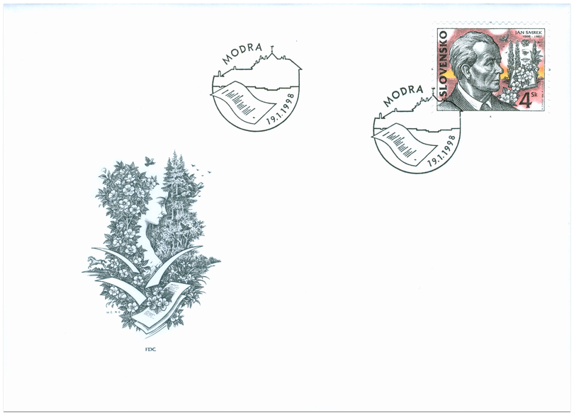 Ministerstvo dopravy, pôšt a telekomunikácií SR vydalo dňa 19. 1. 1998 príležitostnú poštovú známku " Ján Smrek " zo série Osobnosti s nominálnou hodnotou 4 Sk. Na známke okrem nápisov "Ján Smrek, 1898 - 1982" je portrét básnika. Autorom výtvarných návrhov emisie je Marian Čapka, rytcom emisie je Rudolf Cigánik. Grafická úprava známok série Osobnosti Martin Činovský. Viacfarebnú známku o rozmeroch obrazovej časti 30 x 23 mm (na šírku) vytlačila Poštovní tiskárna cenin, a.s., Praha technikou rotačnej oceľotlače v kombinácii s hĺbkotlačou na tlačových listoch po 50 známkach. Súčasne bola vydaná obálka prvého dňa vydania vrátane príležitostnej pečiatky s domicilom Modra...