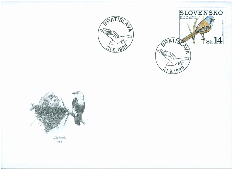 Ministerstvo dopravy, pôšt a telekomunikácií SR vydalo dňa 21. 9. 1999 tri príležitostné poštové známky série "Spevavé vtáctvo" z emisného radu Ochrana prírody: Fúzatka trsťová - 14 Sk Strakoš červenochrbtý - 15 Sk Žltochvost lesný - 16 Sk. 3 známky s vyobrazením uvedených vtákov sú vytlačené na spoločnom tlačovom liste, na medzipoliach ktorého sú vyobrazené ďalšie spevavce. Viacfarebné známky o rozmeroch obrazovej časti 30 x 23 mm (na šírku) umiestnené nad sebou v osi hárčeka (rozmer hárčeka cca 14 x 9 cm - na šírku) vytlačila Poštovní tiskárna cenin Praha, a.s., technikou oceľotlače z plochých platní v kombinácii s ofsetom. Súčasne...