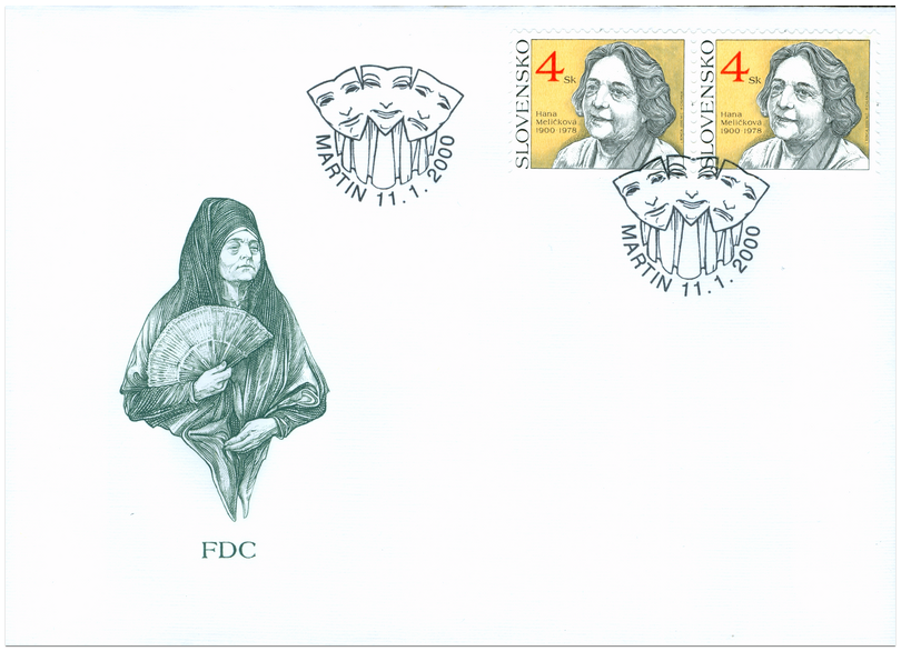 Ministerstvo dopravy, pôšt a telekomunikácií SR vydalo dňa 11. 1. 2000 príležitostnú poštovú známku z emisného radu Osobnosti Hana Meličková v nominálnej hodnote 4 Sk. Na známke je dominujúcim motívom portrét osobnosti, doplnený o príslušný text. Autorom výtvarných návrhov emisie je akad. maliar Igor Benca. Rytinu známky Meličkovej na základe líniovej rozkresby akad. maliara Martina Činovského vytvoril akad. maliar Rudolf Cigánik. Viacfarebné známky o rozmeroch obrazovej časti 30 x 23 mm (na šírku) vytlačila Poštovní tiskárna cenin Praha, a.s., technikou rotačnej oceľotlače v kombinácii s hĺbkotlačou na tlačových listoch po 50 známkach. Súčasne bola vydaná obálka prvého dňa vydania. H. Meličková...