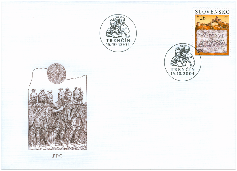 Latinský text rímskeho nápisu v Trenčíne: VICTORIAE AVGVSTORV(m) EXERCITVS QVI LAV GARICIONE SEDIT MIL(ites) ...L(egionis) II DCCCLV (Marcus Valerius) MAXIMIANVS LEG(atus) LEG(ionis) II AD(iutricis) CVR(avit) F(aciendum) V preklade: Víťazstvu cisárov a vojska, ktoré sídlilo v Laugariciu v počte 855 vojakov II. légie, dal zhotoviť M. V. Maximianus, legát II. pomocnej légie. Monumentálny latinský nápis na hradnej skale z r. 179 po Kr. je jedinečná pamiatka svojho druhu in situ na našom území. Ním zvečnili vojská za vlády Marca Aurelia a jeho syna Commoda svoje víťazstvo počas markomanských vojen nad germánskymi Kvádmi v Laugariciu (na území Trenčína). Osada Leukaristos sa dostala v...