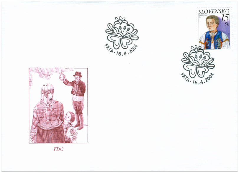 Tradičný pestrý kroj z Paty patrí k jedným z najkrajších na Slovensku. S malými odlišnosťami sa nosí aj v susedných obciach Šoporňa a Hájske. Povesť hovorí, že na území týchto troch obcí bol kedysi veľký háj. V háji boli štyri šopy a okolo nich vznikla osada, ktorú nazvali Šopárňa, z čoho pochádza dnešný názov Šoporňa. Tam, kde stála šopa piata, v miestnom nárečí pátá, vznikla obec Pata. Na území Hájskeho sa háj zachoval najdlhšie. Mužský svadobný kroj sa od obyčajného líši bohato vyšívanou plátenou košeľou, bohatšie zdobeným pruclom z modrého damasku vyzdobeným striebornými šnúrkami a striebornými gombičkami. Úzke nohavice z čierneho...