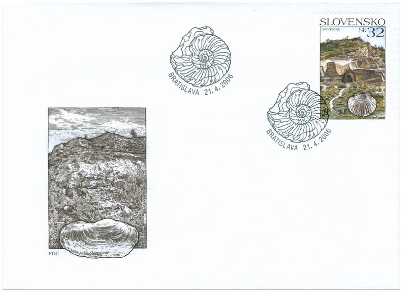 © Slovenská pošta, a.s., 2006 Rôznorodosť geologických procesov počas jednotlivých geologických ér mala na Slovensku za následok vznik širokej škály hornín. Výsledkom spolupôsobenia často protichodných fenoménov (prínos – odnos – redistribúcia horninových más, striedanie mora so súšou atď.), súvisiacich s klimatickými zmenami, je aj vznik viacerých unikátnych prírodných výtvorov, v súčasnosti chránených zákonom. Jedna z pozoruhodných geologických lokalít je aj námetom slovenskej poštovej známky. Ide o svetoznáme nálezisko viac ako 300 druhov skamenelín - pieskovisko Sandberg (pieskový vrch – z nemčiny). Nachádza sa v Národnej prírodnej rezervácii Devínska Kobyla, v katastri obce Devínska Nová Ves, pri juhozápadnom okraji Bratislavy. Z geologického...