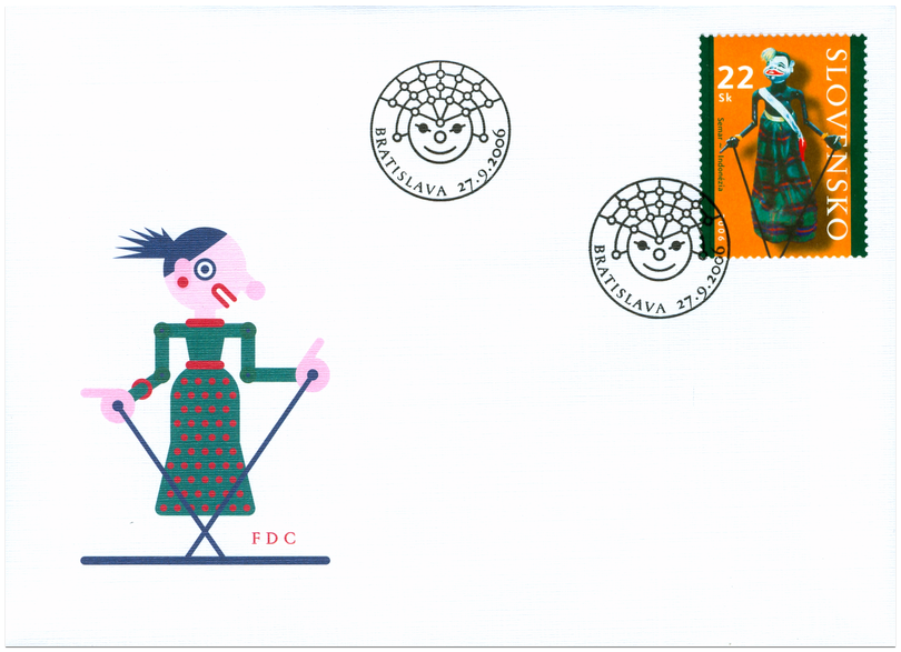 © Slovenská pošta, a. s., 2006 Semar je postavou tradičného divadla Wayang Golek. Bábkové divadlo Wayang má silnú tradíciu nielen na Jáve ale aj v celej Indonézii. Vyjadruje boj medzi dobrom a zlom. Semar alebo Sang Hyang Ismoyo je starší brat najvyššieho boha Guru. Meno Semara je odvodené zo slova sengsem (lákať) a Marsudi (konať, hľadať), čo znamená, že podľa svojho mena Semar nás pobáda hľadať alebo robiť dobré veci. Jeho biela tvár symbolizuje učiteľa s milým a čestným výzorom, ktorého žiaci môžu šťastne nasledovať v jeho ponaučeniach. Naopak, pri učiteľovi s čiernou tvárou trpia, pretože sa ho boja. Jeho jeden...