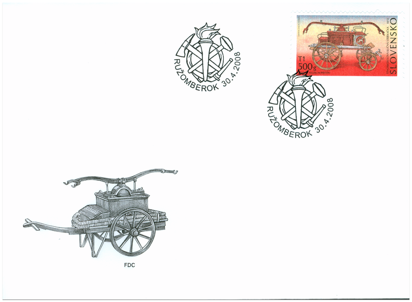 Označenie T1 500 g zodpovedá tarife pre list 1. triedy do 500 g v tuzemskom styku. © Slovenská pošta, a . s., 2008 Striekačku možno použiť na štvorkolesovom voze alebo aj ako prenosnú. Podľa ilustrovaného cenníka výrobkov továrne na striekačky, čerpadlá a hasičské náradie R. A. Smekala pri Prostějove na severnej Morave bola skonštruovaná v roku 1872. Je uložená na železnom ráme s plošinou, na ktorej sú primontované držiaky na savice a žŕdky, predné a zadné sedadlá, stúpadlá, dvojkolesový naviják na hadice, skrinka na náradie a brzda na oboch zadných kolesách. Bola vyrábaná s podvozkom s perami a bez pier. Predná...