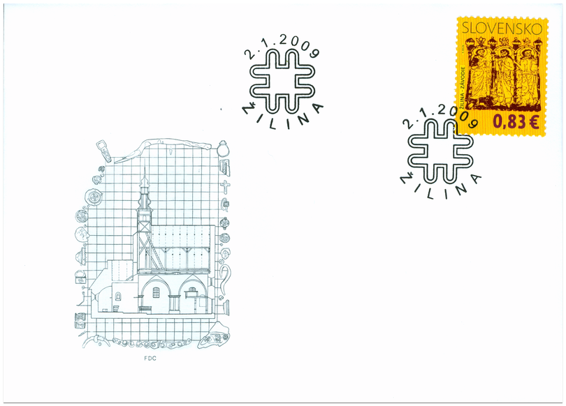 © Slovenská pošta, a . s., 2009 Kostol sv. Štefana kráľa reprezentuje typ neskororománskeho jednoloďového kostola s východným pravouhlým presbytériom a polkruhovou apsidou. Postavili ho pravdepodobne v 50. rokoch 13. storočia. Podľa jednej z hypotéz však môže byť jeho súčasná podoba tiež výsledkom dvoch románskych stavebných etáp. V prvej mal vzniknúť malý jednoloďový kostolík s apsidou, teda dnešná východná časť kostola, a po polovici 13. storočia malo dôjsť k jeho rozšíreniu smerom na západ o novú, rozmernejšiu loď. Kostol sv. Štefana je zaujímavý nielen svojou architektúrou, ale aj nástennými maľbami. Práve vo východnej časti kostola – v presbytériu a apside &ndash...