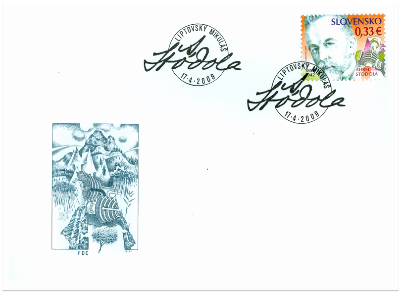 © Slovenská pošta, a. s., 2009 Aurel Stodola sa narodil 10. 5. 1859 v Liptovskom Mikuláši. Už v školskom veku prejavoval technické nadanie, a tak po stredoškolských štúdiách na gymnáziách v Levoči a v Košiciach pokračoval na technike v Budapešti. Ako mimoriadne úspešný študent dostal štipendium a možnosť študovať na polytechnike v Zürichu. Štúdiá dokončil v r. 1884 na parížskej Sorbonne. Po krátkom pôsobení na Slovensku pracoval v niekoľkých strojárskych továrňach v Prahe. Ako vynikajúceho odborníka ho v r. 1892 vysoká škola technická v Zürichu pozvala na novozriadenú katedru stavby strojov, prednášal tu do r. 1929. V Zürichu Stodola strávil pol...