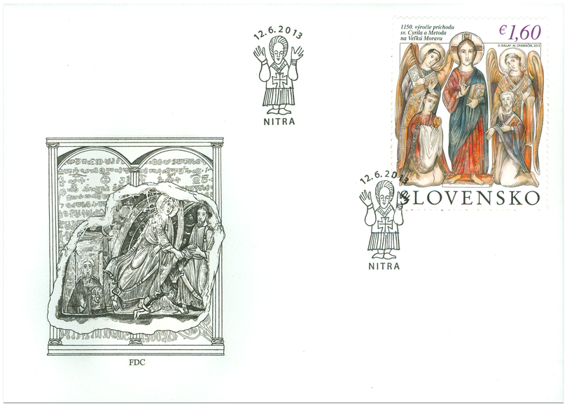 1150. výročie príchodu sv. Cyrila a Metoda na Veľkú Moravu. Spoločné vydanie s Českou republikou, Vatikánom a Bulharskom