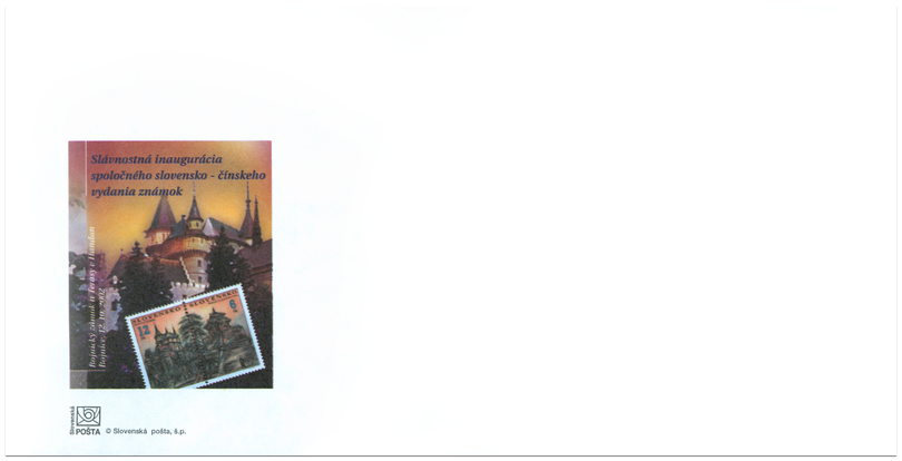 Necelinová obálka s prítlačou "Slávnostná inagurácia spoločného slovensko - čínskeho vydania známok"