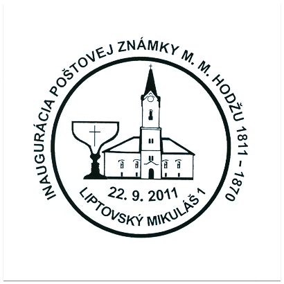 Pečiatka sa bude používať 22. 9. 2011 v Liptovskom Mikuláši na príležitostnej poštovej priehradke počas osláv 200. výročia narodenia Michala Miloslava Hodžu.