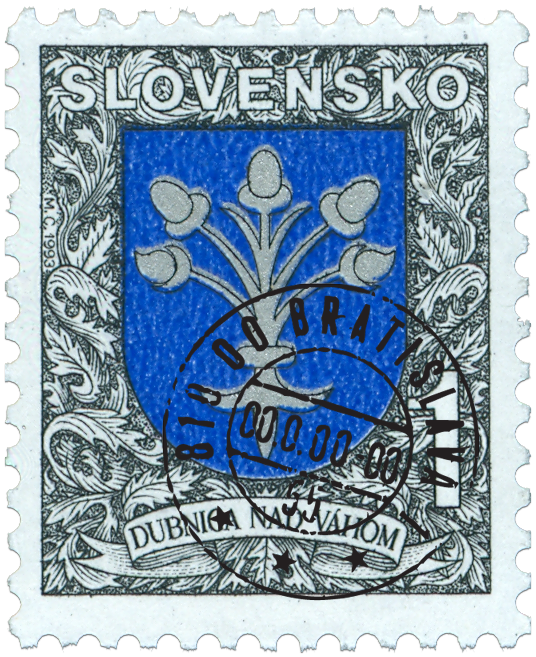 Ministerstvo dopravy, spojov a verejných prác Slovenskej republiky vydalo dňa 8.7.1993 výplatnú poštovú známku "Dubnica nad Váhom" s nominálnou hodnotou 1 Sk. Autorom výtvarného návrhu známky s námetom erbu mesta Dubnica nad Váhom, ryteckej rozkresby a rytiny je akademický maliar Martin Činovský. Známku veľkosti 19x23 mm na výšku vytlačila Poštová tlačiareň cenín Praha a.s. rotačnou oceľotlačou v kombinácii s hĺbkotlačou na tlačových listoch po 100 kusoch. Známka platí v tuzemskom a medzinárodnom styku od 8.7.1993 až do odvolania. Prvá písomná zmienka o Dubnici je z roku 1193, kde je uvedené, že majiteľmi sú bratia Vratislav a Piskin a majetok im daroval...