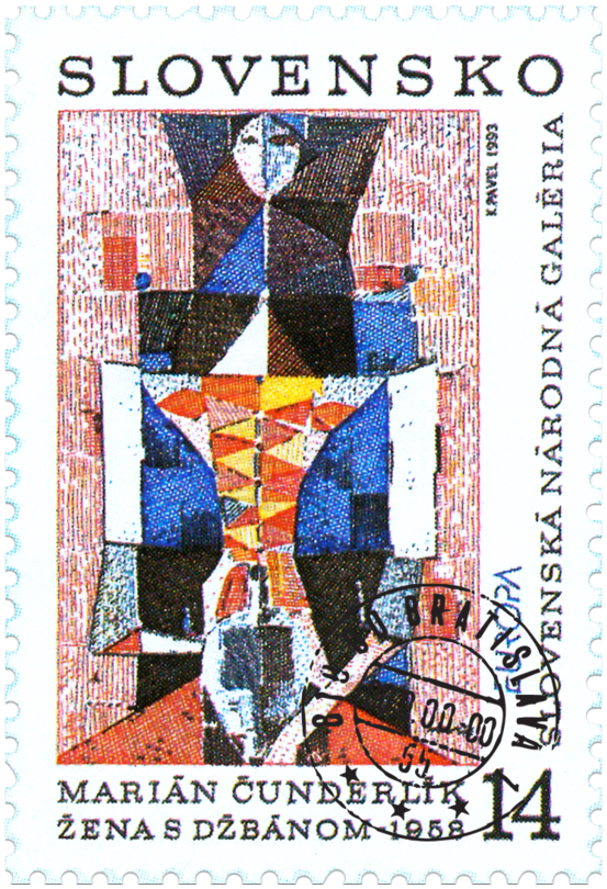 Ministerstvo dopravy, spojov a verejných prác SR vydalo dňa 31.5.1993 príležitostnú poštovú známku v sérii "Europa" Marián Čunderlík - Žena s džbánom. Autorom výtvarného návrhu známky je akademický maliar Marián Čunderlík, autorom rytiny Pavel Kovařík.. Známku rozmerov 26x40 mm vytlačila Poštová tlačiareň cenín Praha a.s. oceľotlačou z plochých platní. Známka platí od 31.5.1993 v tuzemskom a medzinárodnom styku až do odvolania. Marián Čunderlík (31.1.1926 Motyčky pri Banskej Bystrici - 1.10.1983) maliar, ilustrátor, grafik. V rokoch 1946-1949 pôsobil na oddelení kreslenia a maľovania Slovenskej vysokej školy technickej v Bratislave u profesora J.Mudrocha. V rokoch 1949-1953 bol na oddelení monumentálnej maľby Vysokej školy...