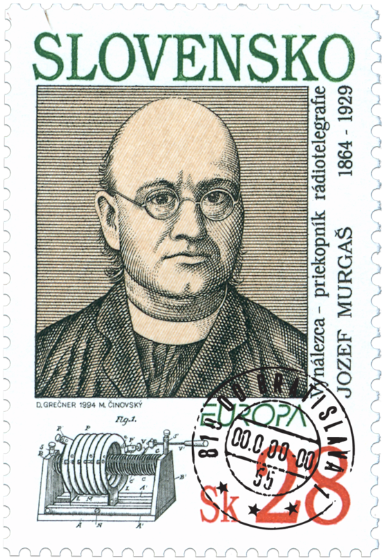 Ministerstvo dopravy, spojov a verejných prác Slovenskej republiky vydalo dňa 27.5.1994 príležitostnú poštovú známku "Jozef Murgaš", z emisného radu "Europa", v nominálnej hodnote 28 Sk. Viacfarebná známka, rozmerov obrazovej časti 26 x 40 mm je venovaná Jozefovi Murgašovi, Slovákovi, ktorý je jedným z objaviteľov rádiotelegrafie. Na známke je jeho portrét, rytecké stvárnenie portrétu vychádza zo zachovanej autentickej fotografie. V dolnej časti známky je citácia z patentu, priznaného v USA, kde uskutočnil podstatnú časť svojich výskumov. Zobrazuje základnú časť vynálezu jeho vysielacieho zariadenia. Nápisy na známke okrem označenia "Europa" uvádzajú: Vynálezca - priekopník rádiotelegrafie Jozef Murgaš 1864 - 1929. Autorom výtvarných návrhov...