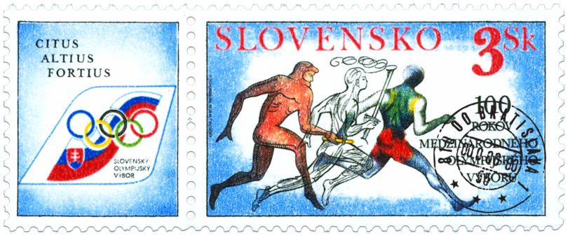 Ministerstvo dopravy, spojov a verejných prác vydalo dňa 23. 6. 1994 príležitostnú poštovú známku "Olympijské hnutie" v nominálnej hodnote 3 Sk. Viacfarebná známka rozmerov 23 x 40 mm, na ktorej je symbolicky vyjadrené odovzdávanie štafety olympijských ideálov od antiky až po modernú dobu, s nápisom 100 rokov Medzinárodného olympijského výboru, je doplnená kupónom rozmerov 23 x 19 mm. Na kupóne je znak Slovenského olympijského výboru a olympijské heslo. Autorom výtvarného návrhu známky a kupónu je akad.maliar Ivan Schurmann. Autorom rytiny známky je akademický maliar Martin Činovský. Rytinu kupónu vytvoril František Horniak. Známku a kupón vytlačila Poštovní tiskárna cenin, a.s., Praha rotačnou...