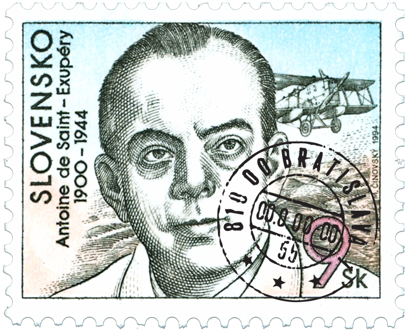 Ministerstvo dopravy, spojov a verejných prác SR vydalo dňa 25. 5. 1994 príležitostnú poštovú známku "Antoine de Saint-Exupéry", zo série Osobnosti, o nominálej hodnote 9 Sk. Známka s portrétom tohto významného spisovateľa a známeho letca a s vyobrazením lietadla v pozadí je autorsky aj rytecky dielom akademického maliara Martina Činovského. Dvojfarebnú známku o rozmeroch obrazovej časti 23 x 30 mm na šírku vytlačila PTC, Praha, a.s. rotačnou oceľotlačou v kombinácii s hĺbkotlačou v tlačových listoch po 50 ks v náklade 5 000 000 ks. Antoine de Saint-Exupéry (29.6.1900 Lyon - 31.6. 1944) - francúzsky spisovateľ a letec, ktorý sa stratil v...