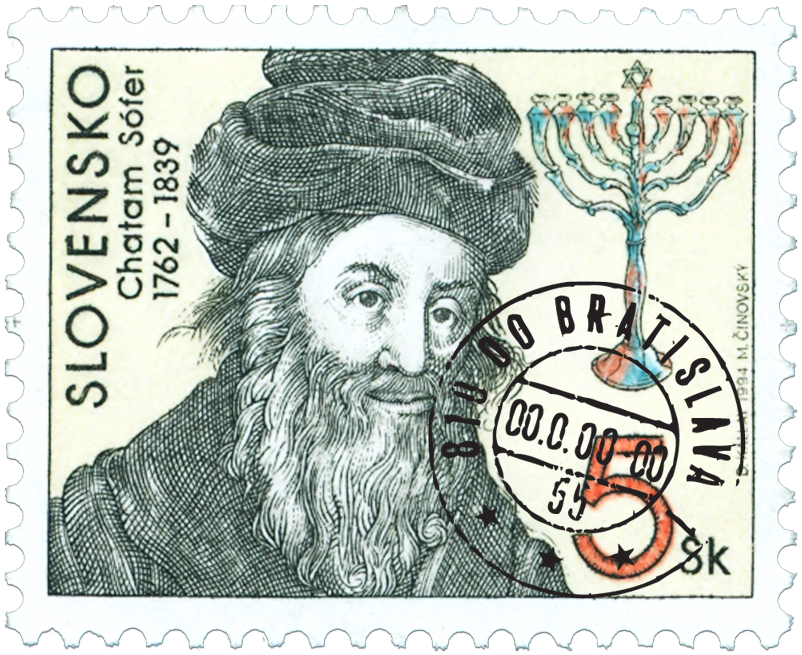 Ministerstvo dopravy, spojov a verejných prác vydalo dňa 12. 12. 1994 príležitostnú poštovú známku "Chatam Sófer" (1762-1839) zo série Osobnosti v nominálnej hodnote 5 Sk. Známka s portrétom hlavného bratislavského rabína - významného židovského učenca minulého storočia a s doplňujúcim motívom svietnika je dielom akad. maliara Dušana Kállaya. Rytcom je akad. maliar Martin Činovský. Viacfarebnú známku rozmerov obrazovej časti 30 x 23 mm na šírku vytlačila PTC, a.s., Praha rotačnou oceľotlačou v kombinácii s hĺbkotlačou na tlačových listoch po 50 ks v náklade 3 000 000 ks. Chatam Sófer, vlastným menom Moše Schreiber (24. 9. 1762 Frankfurt nad Mohanom - 3...