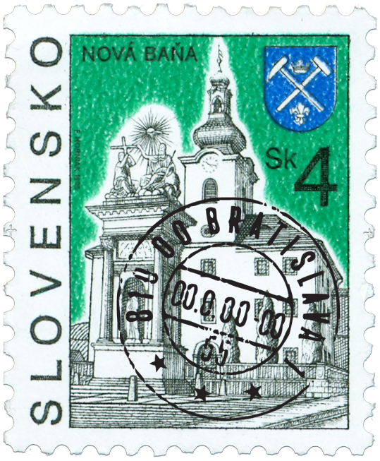 Ministerstvo dopravy, pôšt a telekomunikácií vydalo dňa 15. 6. 1995 výplatnú poštovú známku "Nová Baňa" v nominálnej hodnote 4 Sk. Nová Baňa - starobylé banské kráľovské mesto. Najstaršia písomná zmienka o osade Seunich a súčasne o baníctve je z roku 1337. K jej rozvoju prispeli bohaté náleziská zlatej rudy , takže už v polovici 14. str. sa vyvinula ako aglomerácia mestského typu. Najmä zničenie mesta Turkami v roku 1664, stavovské povstania a problémy spodnej vody pôsobili na rozvoj mesta retardačne. Zatopené šachty mal zachrániť "atmosferický ohňový stroj", vybudovaný v roku 1722 po prvý raz na európskom kontinente práve v Novej Bani...