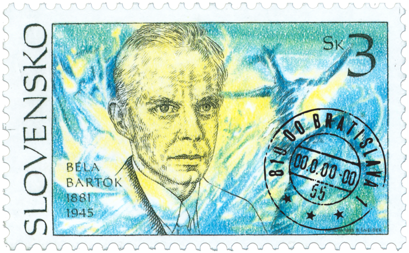 Ministerstvo dopravy, spojov a verejných prác vydalo dňa 20. 4.1995 príležitostnú poštovú známku "Béla Bartók" (1881 - 1945) zo série Osobnosti v nominálnej hodnote 3 Sk. Béla Bartók (25. 3. 1881 Sánnicolaul Mare, Rumunsko - 26. 9. 1945 New York, USA) - hudobný skladateľ, klavirista, pedagóg a etnomuzikológ. V rokoch 1892-99 študoval na gymnáziu v Bratislave, kam sa jeho ovdovelá matka Paula rod. Voitová (rodáčka z Martina) presťahovala. Absoloval Hudobnú akadémiu v Budapešti, od r. 1907 pôsobil na nej ako pedagóg. R. 1940 emigroval do USA. Živým stykom s hudobným folkórom i poznaním moderných prúdov súčasného umenia si vytvoril svojský umelecký...