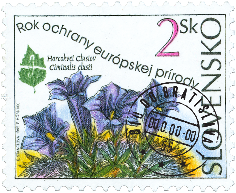 Ministerstvo dopravy, spojov a verejných prác vydalo dňa 28.2.1995 v sérii "Rok ochrany európskej prírody" príležitostnú poštovú známku "Horcokvet Clusiov" v nominálnej hodnote 2 Sk. Horcokvet Clusiov - mimoriadne krásny a lákavý najkrajší horcovitý druh. Na Slovensku rastie od pahorkatinového stupňa (Slovenský kras) až po najvyššie polohy v Belianskych Tatrách. Je úplne chránený druh, hodnotený ako ohrozený taxón v našich horách, na mnohých lokalitách už vzácny. Na známke je okrem vyobrazenia rastliny, jej názvu v slovenčine a latinčine aj text "Rok ochrany európskej prírody" a medzinárodný symbol roka. Známka platí v tuzemskom i zahraničnom poštovom styku od 28.2.1995 až do odvolania...