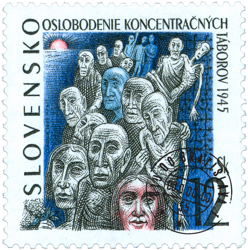 Ministerstvo dopravy, pôšt a telekomunikácií vydalo dňa 5. 5. 1995 príležitostnú poštovú známku "Výročie oslobodenia koncentračných táborov" v nominálnej hodnote 12 Sk. Spolu s 50. výročím skončenia 2. svetovej vojny a víťazstva nad fašizmom si celý svet pripomína aj 50. výročie oslobodenia nacistických koncentračných táborov. Kataklyzma vojny a kataklyzma holokaustu majú spoločné korene. Vytvorenie prvých nacistických koncentračných táborov ihneď po Hitlerovom nástupe k moci dávalo tušiť, že sú neklamnou predzvesťou azda najtragickejšej vojny v dejinách ľudstva. Spomienka na obete vykynožovacích koncentračných táborov nás zaväzuje a vydanie takejto príležitostnej známky je prejavom toho, že naša mladá Slovenská republika si túto záväznosť uvedomuje...