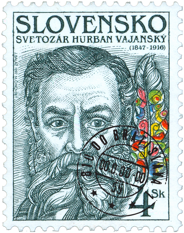Ministerstvo dopravy, pôšt a telekomunikácií vydalo dňa 16. 1. 1997 príležitostnú poštovú známku " Svetozár Hurban Vajanský " zo série Osobnosti o nominálnej hodnote 4 Sk. Známka s portrétom Vajanského (1847 - 1916), spisovateľa, literárneho kritika a politika je doplnená v pravej časti symbolickým motívom brka a ľudového ornamentu. Autorom výtvarných návrhov emisie je akad. maliar Jozef Baláž. Rytcom známky je akad. maliar Martin Činovský. Viacfarebnú známku o rozmeroch obrazovej časti 23 x 30 mm (na výšku) vytlačila Poštovní tiskárna cenin, a.s., Praha technikou rotačnej oceľotlače v kombinácii s hĺbkotlačou na tlačových listoch o 50 známkach . Svetozár Hurban Vajanský...