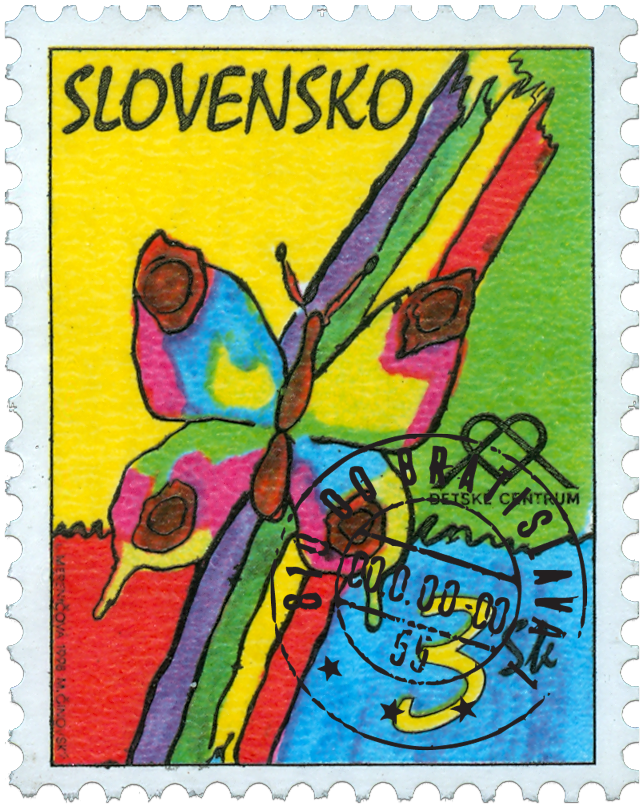 Ministerstvo dopravy, pôšt a telekomunikácií SR vydalo dňa 1. 6. 1998 príležitostnú poštovú známku Detské centrum (Spoločnosť pre pomoc deťom v SR, odkázaným na náhradnú výchovu) s nominálnou hodnotou 3 Sk. Celá emisia používa výtvarné práce detí zo súťaže o návrh na známku. Na známke je maľba Lívie Mereničovej (11-ročnej) zobrazujúca motýľa a dúhu, doplnená o logo Detského centra. Autor grafickej úpravy emisie Martin Činovský, ktorý je súčasne aj rytcom známky. Viacfarebnú známku o rozmeroch obrazovej časti 23 x 30 mm (na výšku) vytlačila Poštovní tiskárna cenin Praha, a.s., technikou rotačnej oceľotlače v kombinácii s hĺbkotlačou na tlačových listoch po 50...