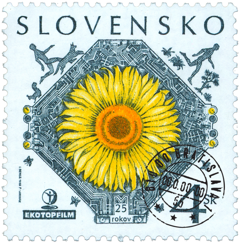 Ministerstvo dopravy, pôšt a telekomunikácií SR vydalo dňa 5. 10. 1998 príležitostnú poštovú známku " Ekotopfilm - 25. rokov" s nominálnou hodnotou 4 Sk. Na známke je symbolická kresba (centrálne umiestnený kvet slnečnice na podklade nákresu plošného spoja, doplňujúce motívy ľudských postáv a zvierat), emblém Ekotopfilmu a text "25 rokov". Autorom výtvarných návrhov emisie je Igor Benca, rytcom je František Horniak. Viacfarebnú známku o rozmeroch obrazovej časti 33 x 33 mm vytlačila Poštovní tiskárna cenin Praha, a.s., technikou rotačnej oceľotlače v kombinácii s hĺbkotlačou na tlačových listoch po 35 známkach . Súčasne bola vydaná obálka prvého dňa vydania vrátane príležitostnej pečiatky...