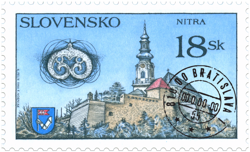 Ministerstvo dopravy, pôšt a telekomunikácií SR vydalo dňa 3. 3. 1998 tri príležitostné poštové známky série "Krásy našej vlasti" s námetom hradov: Budatín - 6 Sk Krásna Hôrka - 11 Sk Nitra - 18 Sk Známka Nitra vyšla v hárčekovej úprave, na hárčeku rozmerov 75 x 82 mm sú okrem známky vyobrazené archeologické pamiatky z nálezísk Nitry. Okrem hradného komplexu a erbu Nitry, nádoba kultúry s volutovou keramikou (neolit), prstene, náušnice, gombíky z veľkomoravského a poveľkomoravského obdobia z nálezísk Nitry, logo výstavy Nitrafila. Autorom známky a hárčeka je Karol Felix, rytcom je František Horniak. Hárček technikou oceľotlač z plochých platní v...
