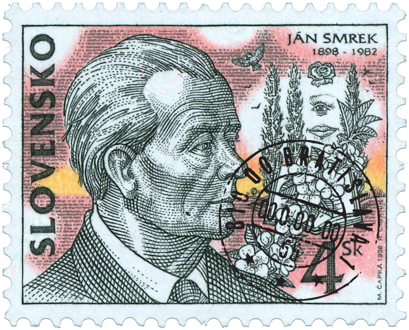 Ministerstvo dopravy, pôšt a telekomunikácií SR vydalo dňa 19. 1. 1998 príležitostnú poštovú známku " Ján Smrek " zo série Osobnosti s nominálnou hodnotou 4 Sk. Na známke okrem nápisov "Ján Smrek, 1898 - 1982" je portrét básnika. Autorom výtvarných návrhov emisie je Marian Čapka, rytcom emisie je Rudolf Cigánik. Grafická úprava známok série Osobnosti Martin Činovský. Viacfarebnú známku o rozmeroch obrazovej časti 30 x 23 mm (na šírku) vytlačila Poštovní tiskárna cenin, a.s., Praha technikou rotačnej oceľotlače v kombinácii s hĺbkotlačou na tlačových listoch po 50 známkach. Súčasne bola vydaná obálka prvého dňa vydania vrátane príležitostnej pečiatky s domicilom Modra...