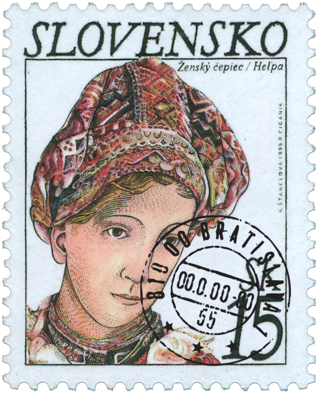 Ministerstvo dopravy, pôšt a telekomunikácii SR vydalo dňa 12. 3 1999 tri príležitostné poštové známky série "Kroje" z emisného radu "Krásy našej vlasti": Ženský čepiec z Čajkova - 4 Sk Ženský čepiec z Heľpy -15 Sk Ženský čepiec z Maduníc -18 Sk Viacfarebné známky s rozmermi obrazovej časti 23 x 30 mm (na výšku) vytlačila Poštovní tiskárna cenin Praha, a.s., technikou oceľotlače z plochých platní v kombinácií s ofsetom na tlačových listoch po 10 známkach. Výtvarné návrhy emisie vytvorila akad. maliarka Kamila Štanclová s použitím fotografií Karola Plicku. Rytiny známok vytvorili akad. maliar Rudolf Cigánik (4 Sk,15 Sk) a František Horniak...