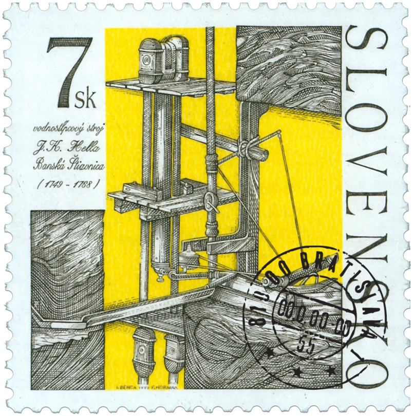 Ministerstvo dopravy, pôšt a telekomunikácií SR vydalo dňa 21. 9. 1999 príležitostnú poštovú známku "Vodnostĺpcový stroj J.K.Hella" z emisného radu Technické pamiatky s nominálnou hodnotou 7,-Sk. Na známke je zobrazená časť vodnosĺpcového stroja a text "Vodnosĺpcový stroj J.K.Hella, Banská Štiavnica (1749-1768)". Autorom výtvarných návrhov emisie je akad. maliar Igor Benca. Rytiny vytvoril František Horniak. Viacfarebnú známku o rozmeroch obrazovej časti 33 x 33 mm. Vytlačila Poštovní tiskárna cenin Praha, a.s., technikou rotačnej oceľotlače v kombinácii s hĺbkotlačou na tlačových listoch po 35 známkach. Súčasne bola vydaná obálka prvého dňa vydania vrátane príležitostnej pečiatky s domicilom Banská Štiavnica. Na FDC portrét J.K.Hella...